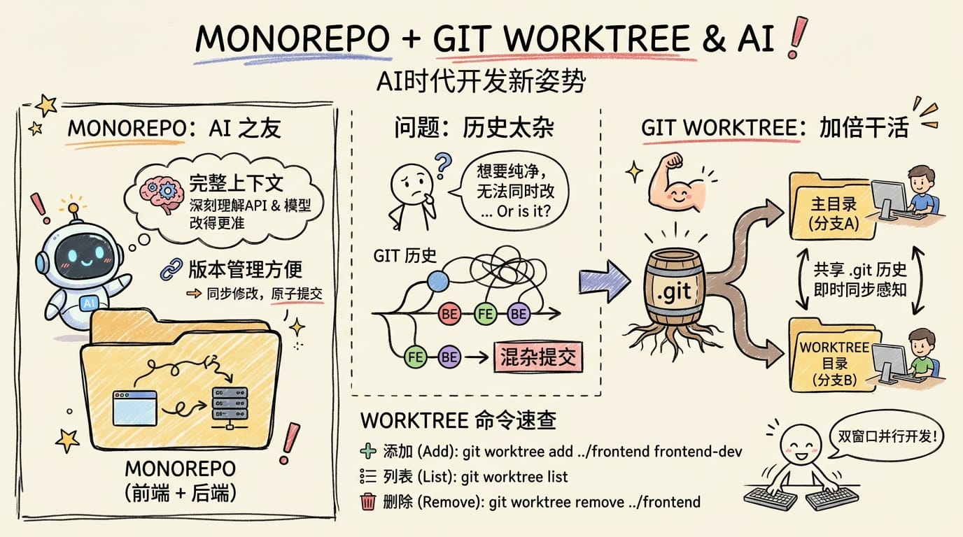 Git Worktree:AI 时代,构建个人开发者的 Monorepo 线性工作流